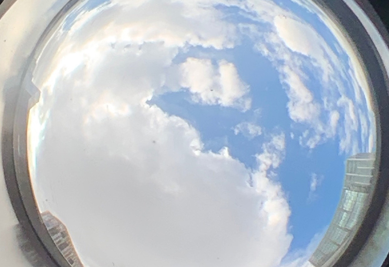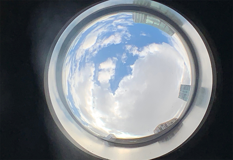 The periscope penetrates the roof two floors above and imports a view of the sky.